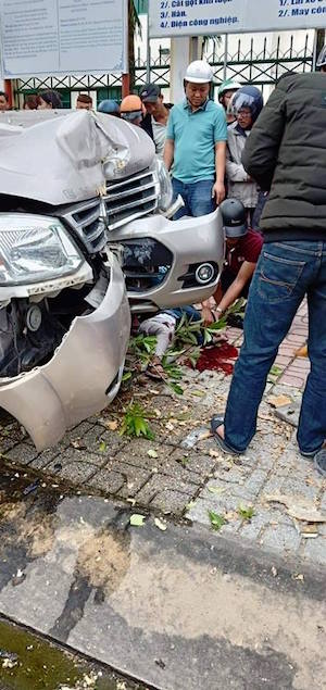 Sau đó, xe ô tô tiếp tục lao về phía trước tông vào 2 mẹ con đang đứng đón xe buýt làm bé trai 4 tuổi bị thương nặng và được đưa đi cấp cứu trong tình trạng nguy kịch. Tại hiện trường, đầu xe ô tô biến dạng, bung 2 túi khí, trong khi đó cây hoa sữa bật gốc và gãy đôi.