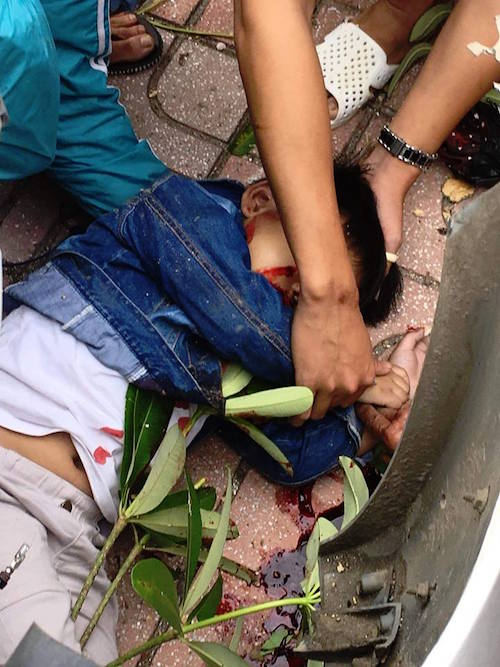 Vụ tai nạn thương tâm xảy ra trên đường Huỳnh Thúc Kháng, TP Tam Kỳ, Quảng Nam. Hai mẹ con đang đứng đón xe bus thì bị xe ô tô lao lên tông trúng. Bé trai 4 tuổi và mẹ bị thương nặng.