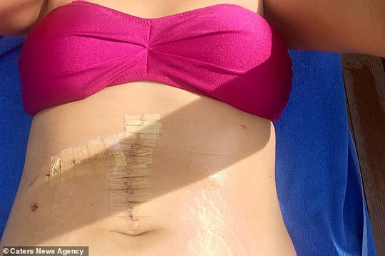Vết sẹo phẫu thuật lớn trên bụng cô Joslyn. Ảnh: Caters News Agency