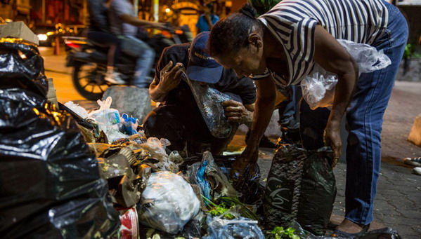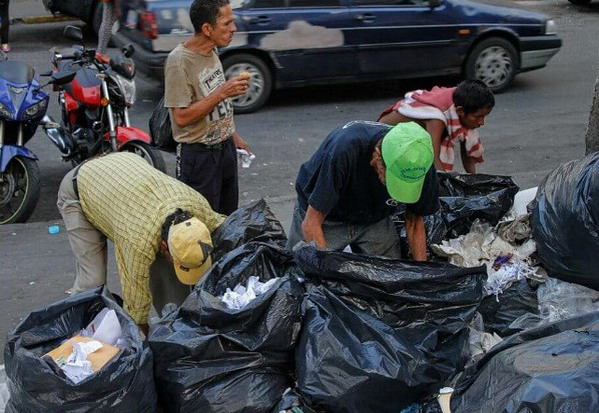 Ảnh người lớn và trẻ em Venezuela phải đi bới rác để tìm thực phẩm.