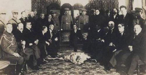 Phổ Nghi (ngồi ghế, giữa) khi được người Nhật dựng lên làm Hoàng đế Đại Mãn Châu. Ảnh: Picturechina.com.cn