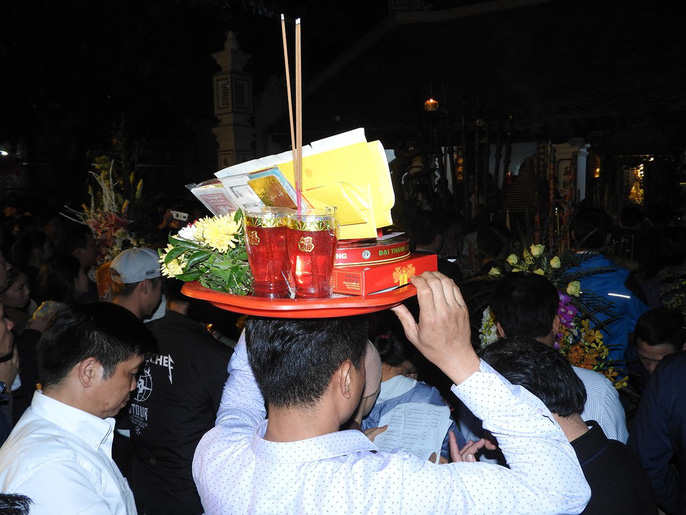 Nhiều người phải đội lễ lên đầu mời chen chân được vào trong