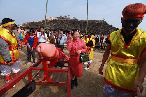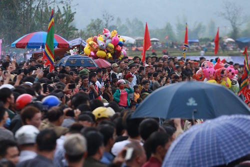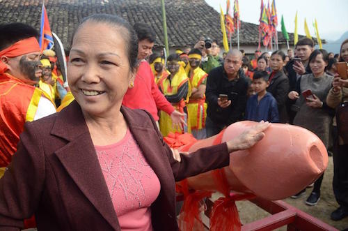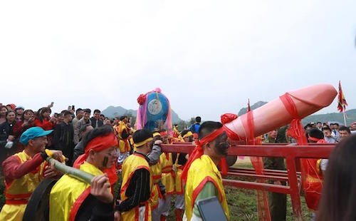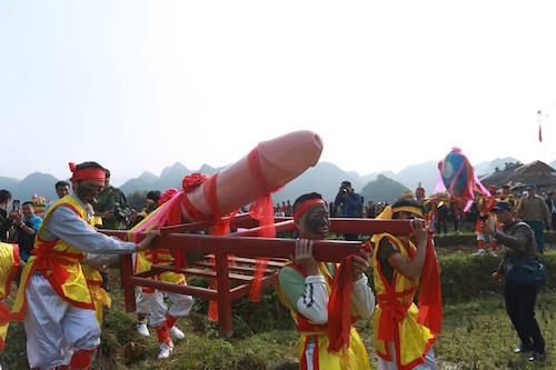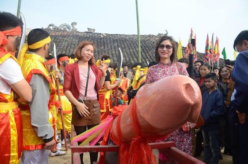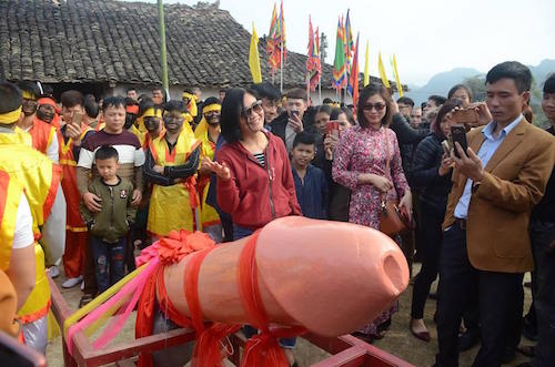 Lễ hội táo bạo nhất Việt Nam được tổ chức tại xã Trấn Yên, huyện Bắc Sơn, tỉnh Lạng Sơn. Ngày này, du khách đổ về đây rất đông. Các chị em phụ nữ chen chân chụp ảnh cùng của quý khổng lồ.