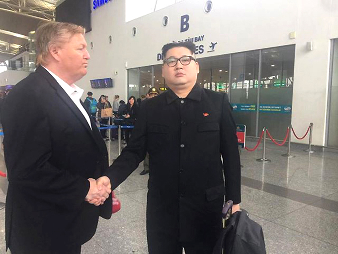 Howard, bản sao của ông Kim Jong-un, tại sân bay Nội Bài sáng nay. Ảnh: CTV.
