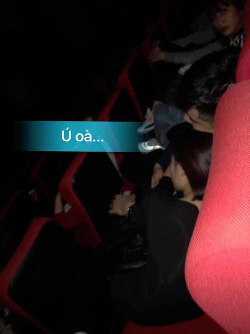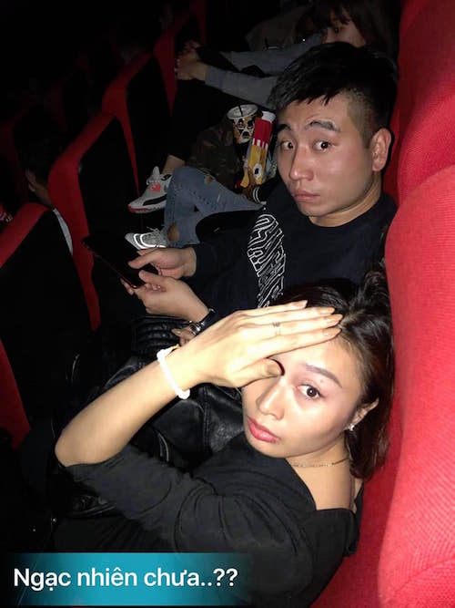 - Tới rạp chiếu phim, chị vợ âm thầm mua vé ngồi ngay hàng ghế sau.