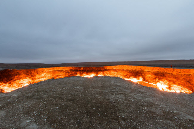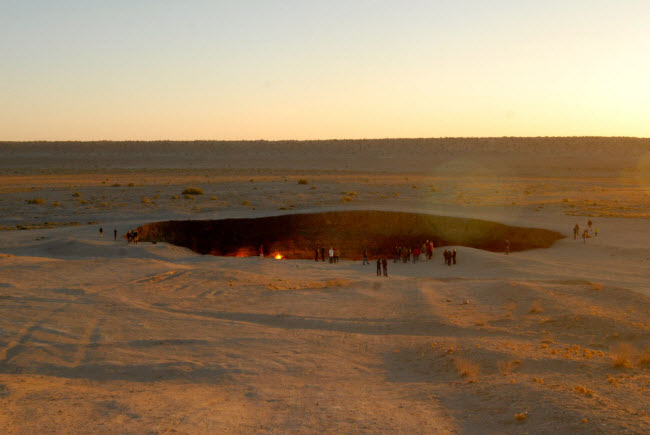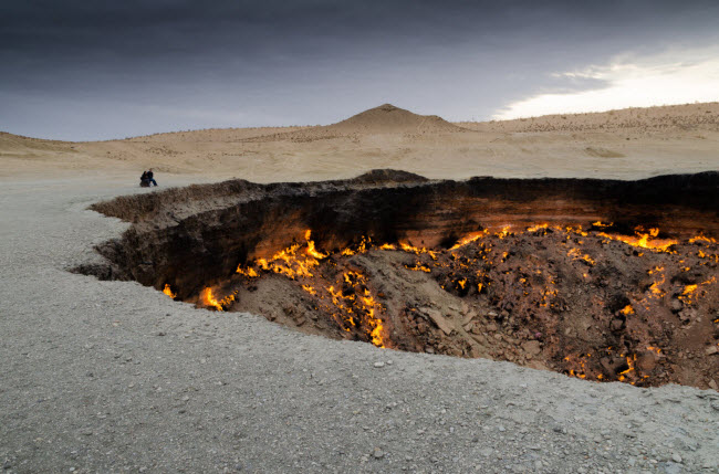 "Cổng địa ngục" của thế giới nằm ở đâu? Tại sao nơi này lại hấp dẫn khách du lịch đến vậy? Đó là hố Darvaza nằm giữa sa mạc khô cằn ở Turkmenistan.