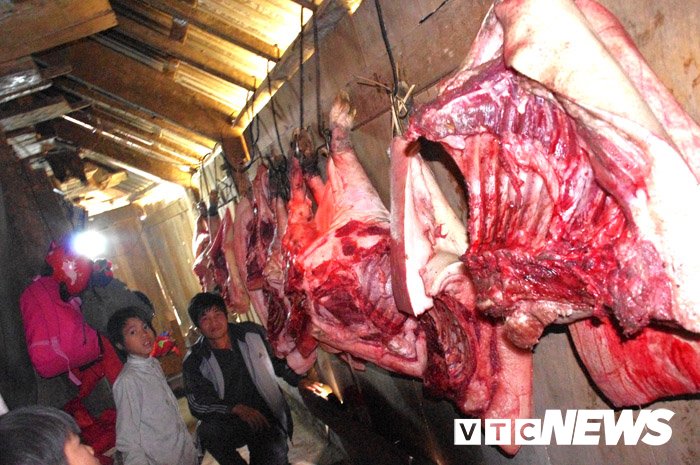 Nhà anh Lềnh đông con cái, nên cứ thi thoảng lại mổ một con. Lòng phèo ăn trước. Thịt xẻ ra thành từng miếng dài, treo trên gác bếp tầng tầng lớp lớp lên tận mái nhà. Khói từ bếp củi cháy quanh năm suốt tháng sẽ bảo vệ những miếng thịt khỏi sự xâm nhập của vi khuẩn.