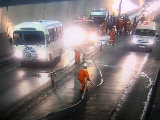 Đến 8 giờ 43 phút, đám cháy đã được khống chế, thông xe cửa hầm phía Nam, xe bị cháy được cứu hộ ra cửa hầm phía Bắc để giao thông trong hầm trở lại bình thường. Quan tài trên xe đã được di chuyển sang phương tiện khác để tiếp tục hành trình. Vụ hỏa hoạn không gây thiệt hại về người. Theo ghi nhận, xe 16 chỗ chở quan tài bị cháy phần đầu xe, nguyên nhân có thể do bị chập điện tự bốc cháy.