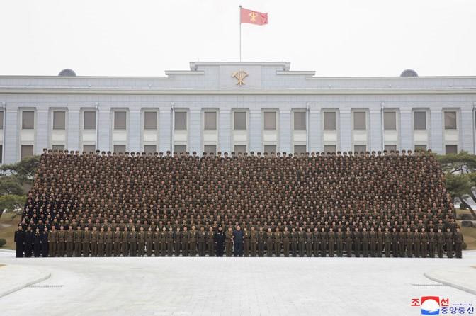 Ông Kim Jong Un cũng đã chụp hình cùng các quân nhân tham dự hội nghị. Ảnh: KCNA.