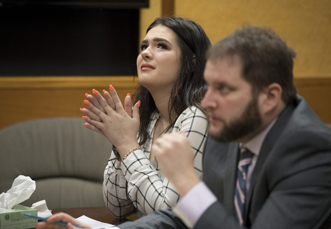 Tại phiên xét xử ngày 27/3, cả bị cáo và nạn nhân đều không cầm được nước mắt. Bị cáo Tay'Lor khóc và nói thật sự hối hận vì đã gây ra "nỗi đau đớn và nhục nhã" cho bạn của mình. Trong khi đó, nạn nhân Jordan Holgerson nghẹn ngào cho biết cú ngã "đã thay đổi cuộc đời tôi theo hướng rất tồi tệ".