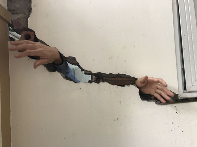 Một phần bức tường của nhà chị Quyên với hàng xóm có thể thò hẳn tay qua nết nứt.