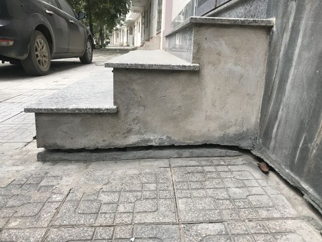 Bậc tam cấp, móng nhà bị trơ ra, nứt nẻ sau khi bị sụt lún