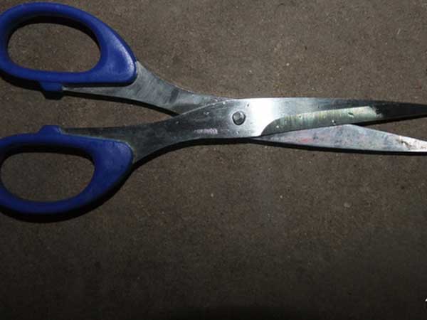 Chiếc kéo tang vật của vụ án được công an thu giữ tại hiện trường - Ảnh: H.T.