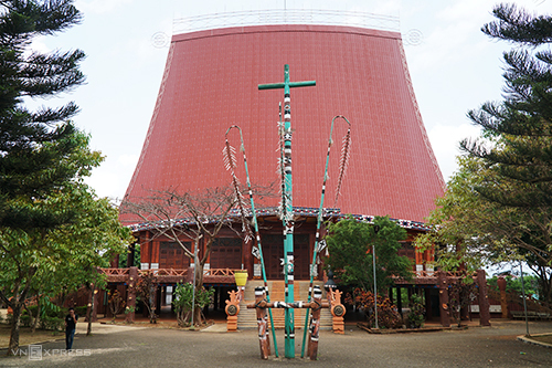 Nhà thờ có kiến trúc nhà rông ở thành phố Pleiku. Ảnh: Phong Vinh.