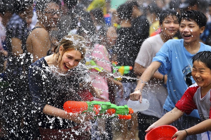 Tết té nước Songkran của người Thái Lan được mệnh danh là "đại chiến súng nước lớn nhất thế giới". Lễ hội năm nay diễn ra từ 13 tới 15/4. Không chỉ té nước vào nhau để cầu chúc may mắn, dịp mừng năm mới của người Thái còn được du khách hưởng ứng bằng trò bắn súng nước. Ảnh: Lovepattayathailand.