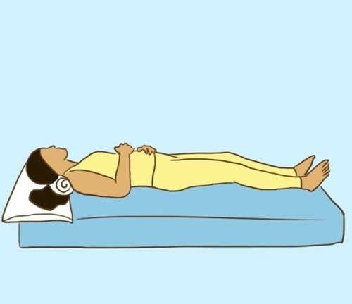 Điều đáng lưu ý là tư thế này phải dùng gối kê cao chân lên khoảng 12cm. Gối cao hơn hoặc thấp hơn đều không mang lại tác dụng như mong đợi.