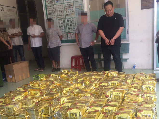 Qua kiểm tra, phát hiện trong thùng xe tải 60C-462.24 có 60 thùng các tông, mỗi thùng có 1 loa kéo tay màu đen hiệu Temeisheng, trong đó có 1 loa chèn giấu bên trong 10 gói ni lông màu xanh dạng túi trà có chữ Guanyinwang, và trong 59 loa còn lại mỗi loa có 10 gói ni lông màu vàng dạng túi trà có in chữ Daguanyin.