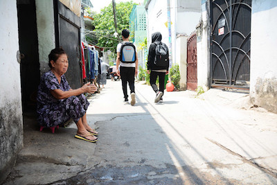 Theo ghi nhận, trưa 21.4, nhiều người dân trong các con hẻm nhỏ phải ra ngoài… cửa ngồi, vì không thể chịu nổi không khí ngột ngạt trong nhà.