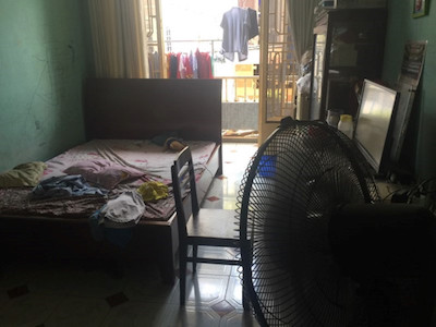 Một người dân trong hẻm trên đường Nơ Trang Long (Q.Bình Thạnh) "bỏ nhà" ra ngồi trước sân vì quá ngột ngạt