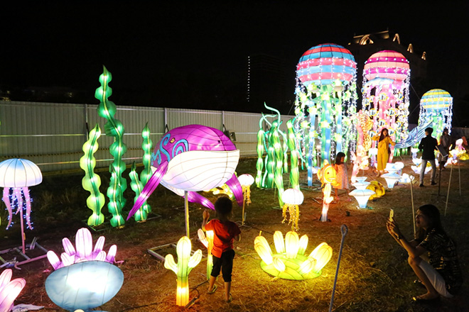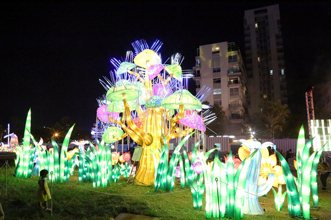 Điểm nhấn của lễ hội là 24 tác phẩm đèn lồng khổng lồ cao trên 10m và các tác phẩm đèn LED được thắp sáng.