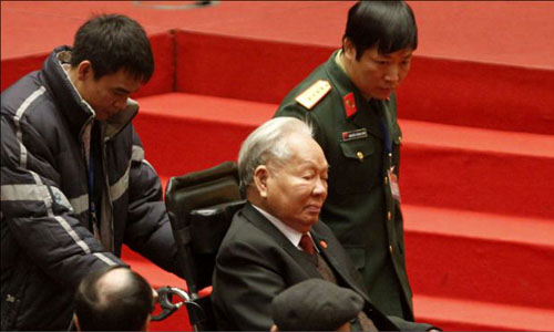 Nguyên Chủ tịch nước, Đại tướng Lê Đức Anh đến dự Đại hội Đảng XI năm 2011 trên xe lăn. Ảnh: Reuters.