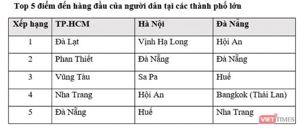Trong khi đó, khí hậu mát lành dễ chịu tại các khu vực có nhiều đồi núi như Đà Lạt đang “vẫy gọi” du khách Sài Gòn. Hoặc nếu ngại phải di chuyển nhiều thì Phan Thiết và Vũng Tàu cũng là hai điểm đến lý tưởng với người Sài Gòn khi cùng xuất hiện trong top 3.