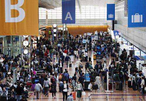 Sân bay Haneda tại Tokyo đông đúc vào ngày đầu tiên của Tuần lễ Vàng. Ảnh: Kyodo.