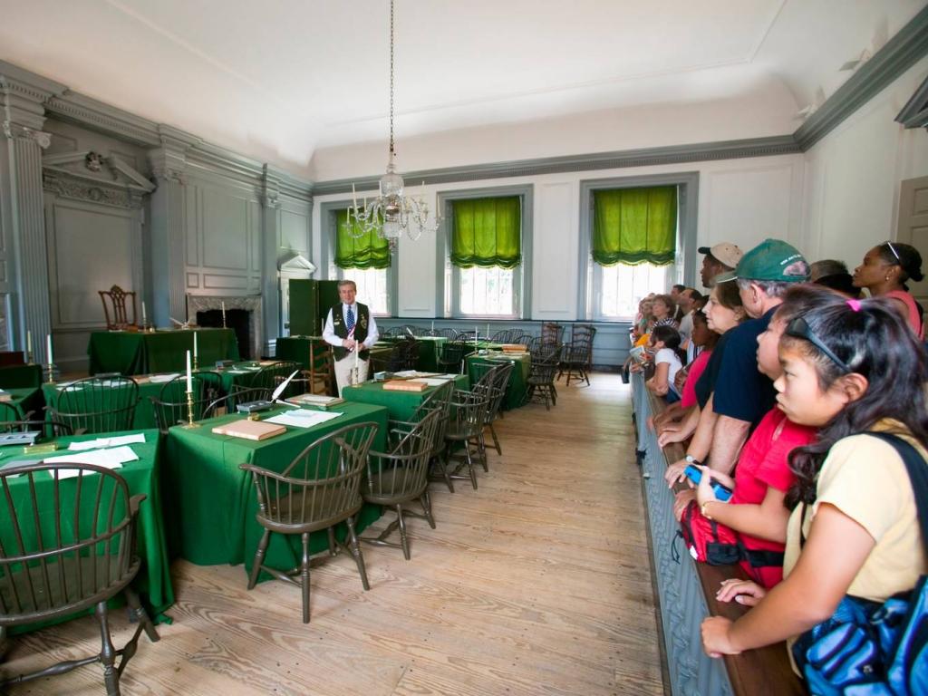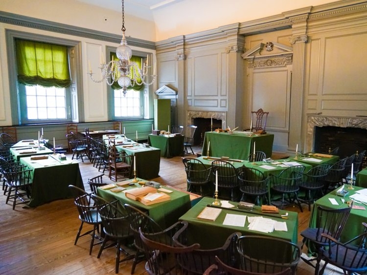 Phòng hội nghị trong Hội trường Độc lập là nơi Tuyên ngôn Độc lập và Hiến pháp Mỹ được ký kết. Tòa nhà được xây dựng vào năm 1732 với tên Tòa nhà bang Pennsylvania.