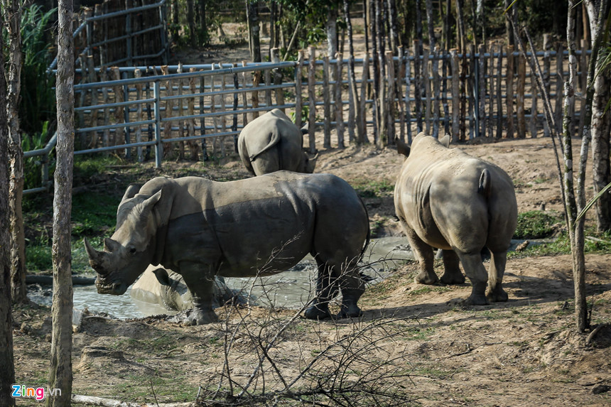 “Tê giác là loài động vật cảnh giác cao độ với môi trường xung quanh, khi mới đẻ, chúng thường để con non lên trước mặt để quan sát. Chỉ khi thấy an toàn tuyệt đối, không còn căng thẳng, tê giác mới để con tự do đi lại”, anh Bùi Phi Hoàng, tổ trưởng chăm sóc động vật Vinpearl Safari giải thích.