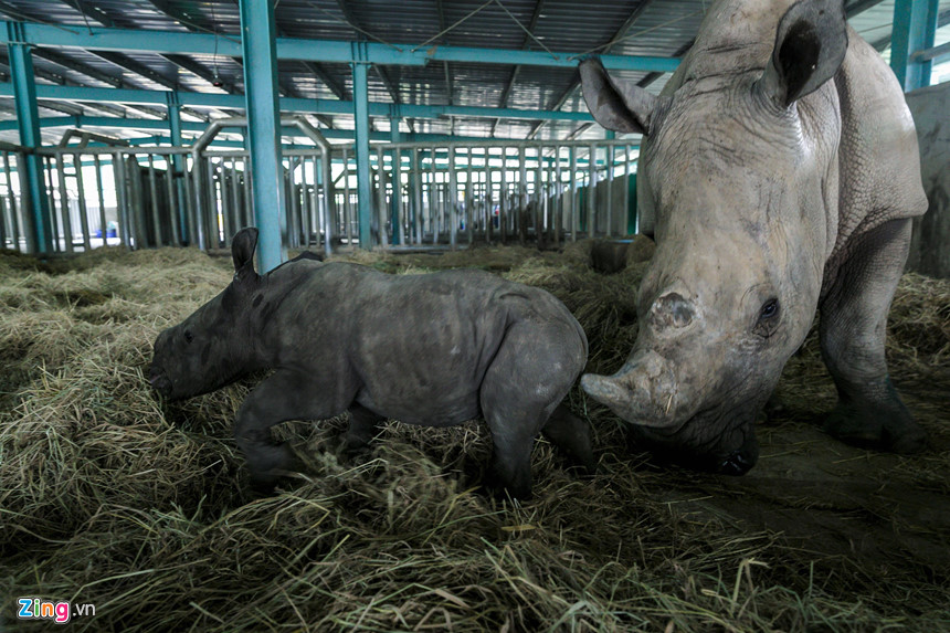 Chú tê giác sơ sinh đầu tiên được ra đời ngày 3/4 là con của cặp bố mẹ tê giác trắng châu Phi (White Rhinoceros). Sau đó 17 ngày, thêm một chú tê giác trắng nữa chào đời trong sự hân hoan, hạnh phúc của toàn bộ lực lượng bác sĩ thú y, chuyên viên chăm sóc của công viên.