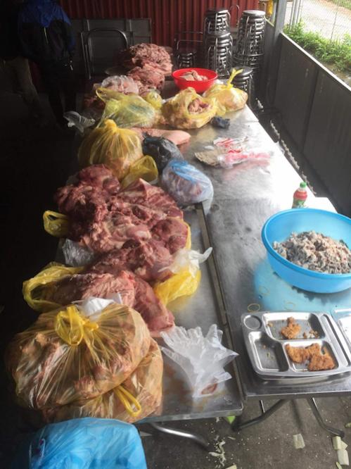 Đồng thời, nhóm từ thiện đã báo cho cơ sở cung cấp thực phẩm, các cơ quan chức năng xã, huyện đến kiểm tra số thịt và xương lợn trên"