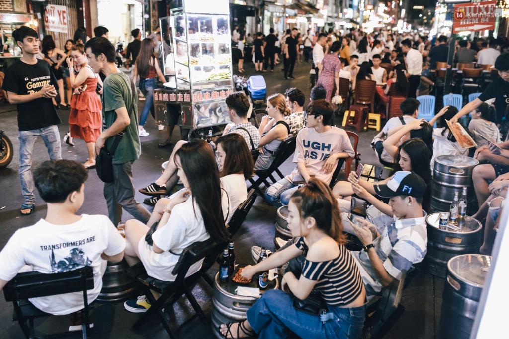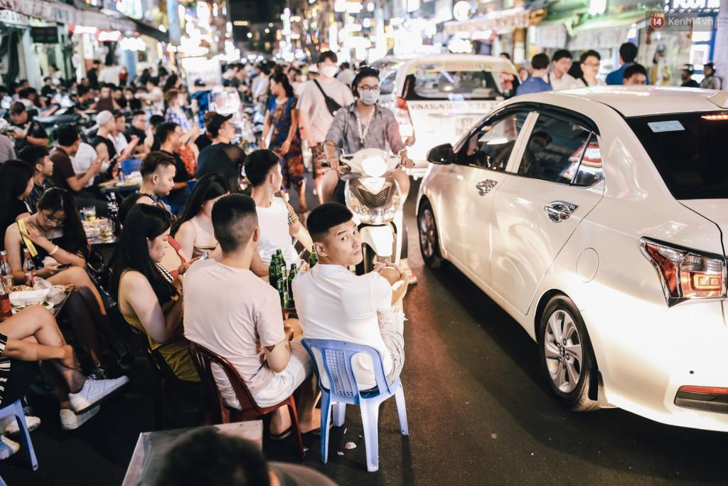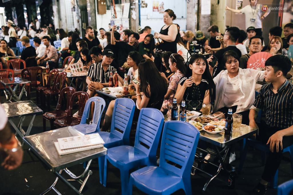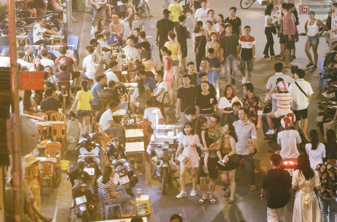 Từ đầu phố đến cuối phố đều tràn lan người ngồi ra giữa đường ăn nhậu.
