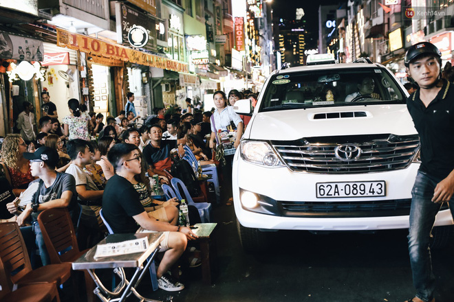 Thực tế, khi chúng tôi ghi nhận từ 18h đến 0h, mặc dù phố đi bộ Bùi Viện bị bàn ghế quán nhậu lấn chiếm tràn lan, không còn lối đi bộ nữa nhưng không thấy cơ quan chức năng nào đến xử lý.