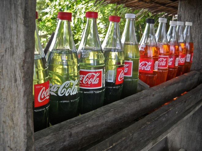 Tại Indonesia và Philippines, ta có thể bắt gặp rất nhiều hàng bán xăng dầu trong chai Coca-Cola ven đường