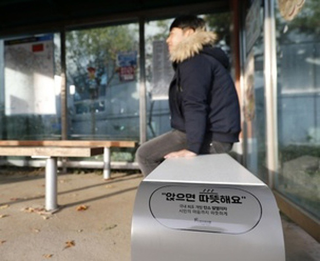 Hàn Quốc lắp đặt những băng ghế sưởi điện tại các điểm đón xe bus để người dân chống chọi với giá lạnh mùa đông