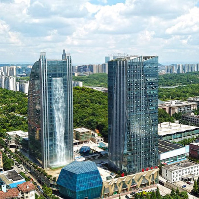 Một tòa nhà chọc trời ở Qúy Dương, Trung Quốc, sở hữu dòng thác nhân tạo cao 108m
