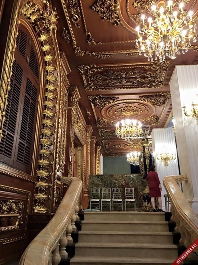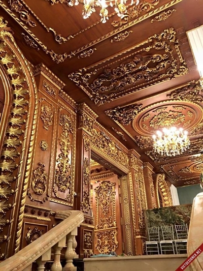 Nội thất bên trong cũng cực kì quý giá. Từ tường, cầu thang, sàn đến bàn ghế… đều sử dụng những loại gỗ quý hiếm được chạm trổ tinh xảo. Nhìn từ ngoài ai cũng nghĩ bên trong cũng mang phong cách châu Âu. Thế nhưng, nếu bước vào bên trong bạn sẽ cảm thấy thực sự cʜoáɴg ngợp vì nó được thiết kế theo lối kiến trúc hoàng gia Đông Phương.