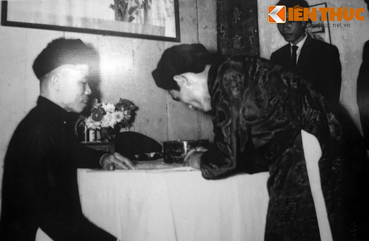 Chủ hôn chuẩn bị vào xin rước dâu, đám cưới ông Trần Đình Giai và bà Nguyễn Khoa Diệu Đoan, 16/1/1965, nay ở phường Thuận Thành, TP Huế.