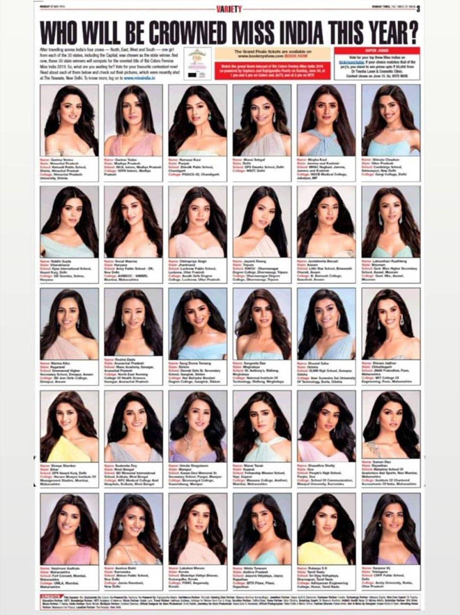 Mới đây, tờ Times of India đã công bố hình ảnh của 30 ứng viên xinh đẹp cùng tranh vương miện Hoa hậu Ấn Độ 2019. Tuy nhiên, bức ảnh này đã gây nên làn sóng phẫn nộ của người dân Ấn Độ vì các cô gái quá giống nhau đến mức khó phân biệt khi để cùng một kiểu tóc và cùng tông màu da.