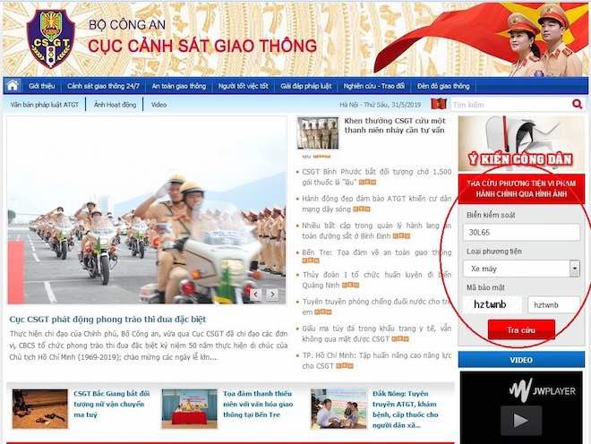Như đã nêu ở trên, hệ thống tra cứu lỗi vi phạm giao thông qua hình ảnh camera được tích hợp trên Trang thông tin điện tử của Cục Cảnh sát giao thông (csgt.vn). Hiện nay bên ngoài giao diện trang, chúng ta đã có thể thấy khung tra cứu phương tiện vi phạm hành chính qua hình ảnh, với các phần nhập biển kiểm soát và loại phương tiện để tra cứu.