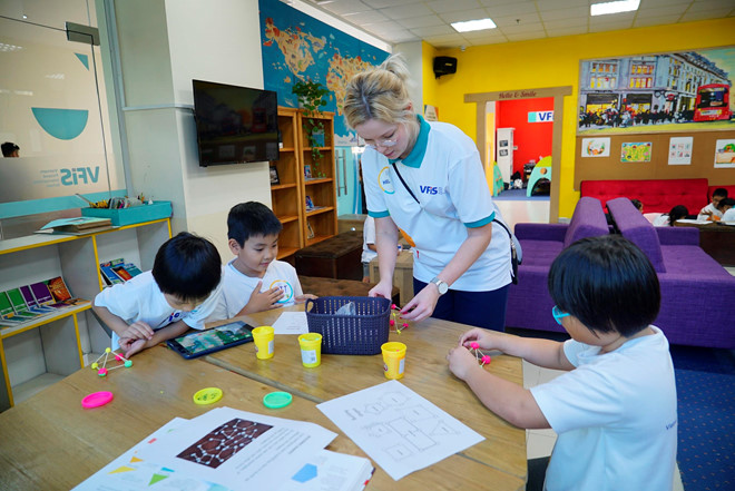 Trường Quốc tế Việt Nam - Phần Lan (VFIS) có hai hệ giảng dạy gồm hệ quốc tế và song ngữ ở cả 3 cấp học. Đối với hệ quốc tế, chương trình từ lớp một tới lớp 9 được thiết kế dựa trên chương trình giáo dục cốt lõi của Phần Lan. Chia sẻ với ****.vn, đại diện nhà trường cho biết các môn đều được giáo viên Phần Lan và quốc tế dạy bằng tiếng Anh, theo phương pháp của Phần Lan. Học sinh người Việt được học bổ sung các môn Tiếng Việt, Việt Nam học (tích hợp Lịch sử, Địa lý và Đạo đức, Văn hoá) bằng tiếng Việt theo quy định của Bộ GD&ĐT.