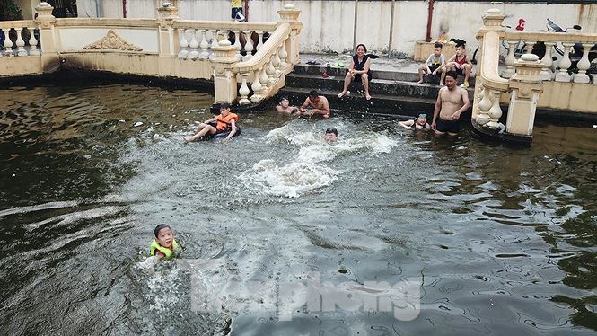 Những hồ nước có chất lượng nước khá sạch là nơi cho trẻ nhỏ bơi lội hạ nhiệt trong những ngày hè nóng bức.