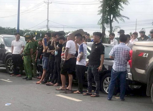 Thấy nhóm cảnh sát xô xát với mình tại quán ăn lên ôtô bỏ về, nhiều giang hồ lên xe bán tải đuổi theo, bao vây suốt 2 giờ.