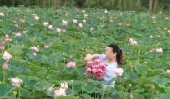 Du khách ý thức quá tệ làm xấu đi hình ảnh của công viên. Một công viên sinh thái ở tây nam Trung Quốc, hồ sen đẹp như vậy mà hàng trăm du khách không ngại khó lội xuống hồ hái sen đem về.