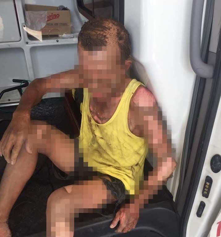 Gia đình ông P. (Nam Định) đang ăn cơm thì con trai cầm can xăng đổ lên người mình và ông rồi đốt.