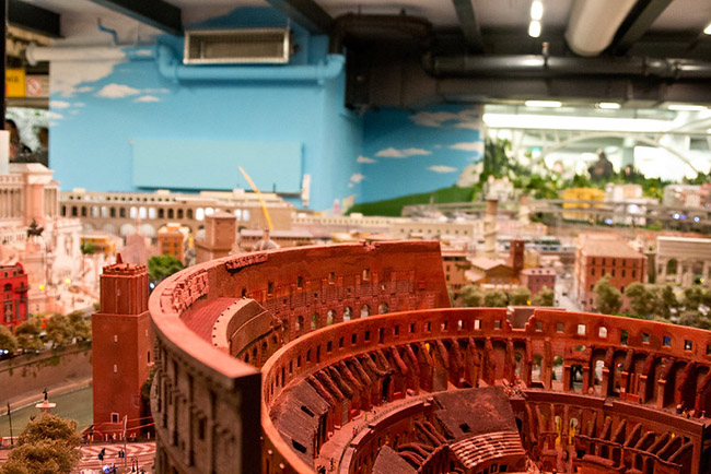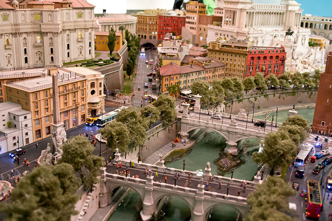 Khung cảnh thành Rome với cây cầu bắc ngang qua sông, những tòa cao ốc nhiều mắc sắc, con đường lớn, những chiếc ô tô đang chiếu đèn trong một buổi chiều nhập nhoạng tối và thậm chí cả những mô hình người nhỏ li ti … tất cả đều vô cùng tinh xảo, sống động và ấn tượng.