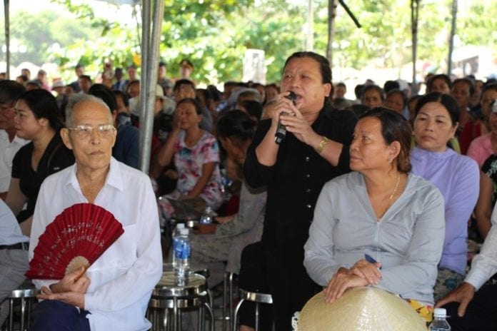 Người dân Khánh Sơn khóc trong buổi đối thoại với chính quyền.