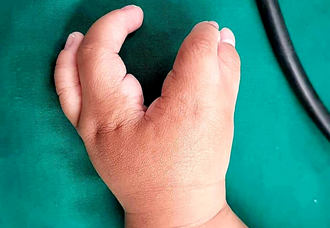 Bàn tay bé trai trước mổ. Ảnh bệnh viện cung cấp.