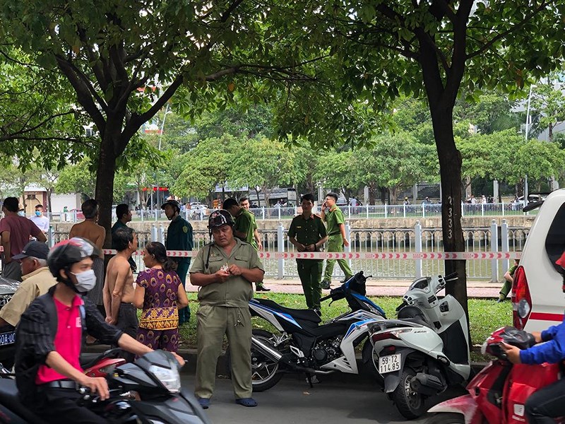Lần theo dấu vết, cảnh sát phát hiện chiếc xe máy của nghi phạm được bỏ lại ven bờ kênh Nhiêu Lộc – Thị Nghè (phường 17, quận Bình Thạnh).