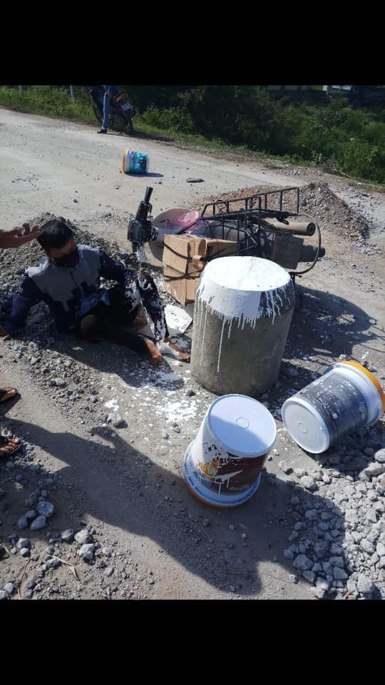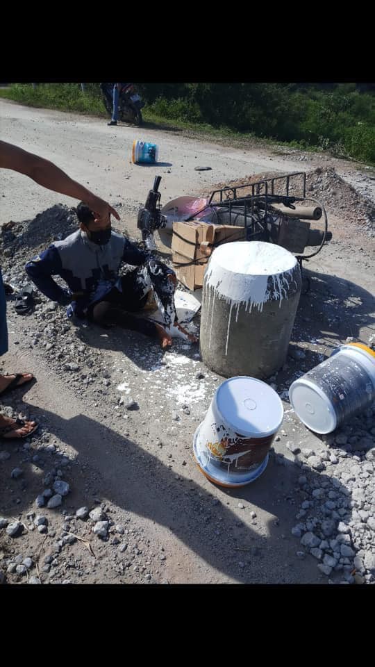 "Đây là hai trụ bê tông được mọc lên giữa đường mà người dân làm để bảo vệ tuyến đường của họ. Không hề có phản quang để cảnh báo. Từ sáng đến tối không biết bao nhiêu vụ tai nạn xảy ra. Và khi anh thợ sơn bị ngã vào chiều hôm qua thì có người thấy tiện, quét sơn trắng vào trụ cho nó nổi.